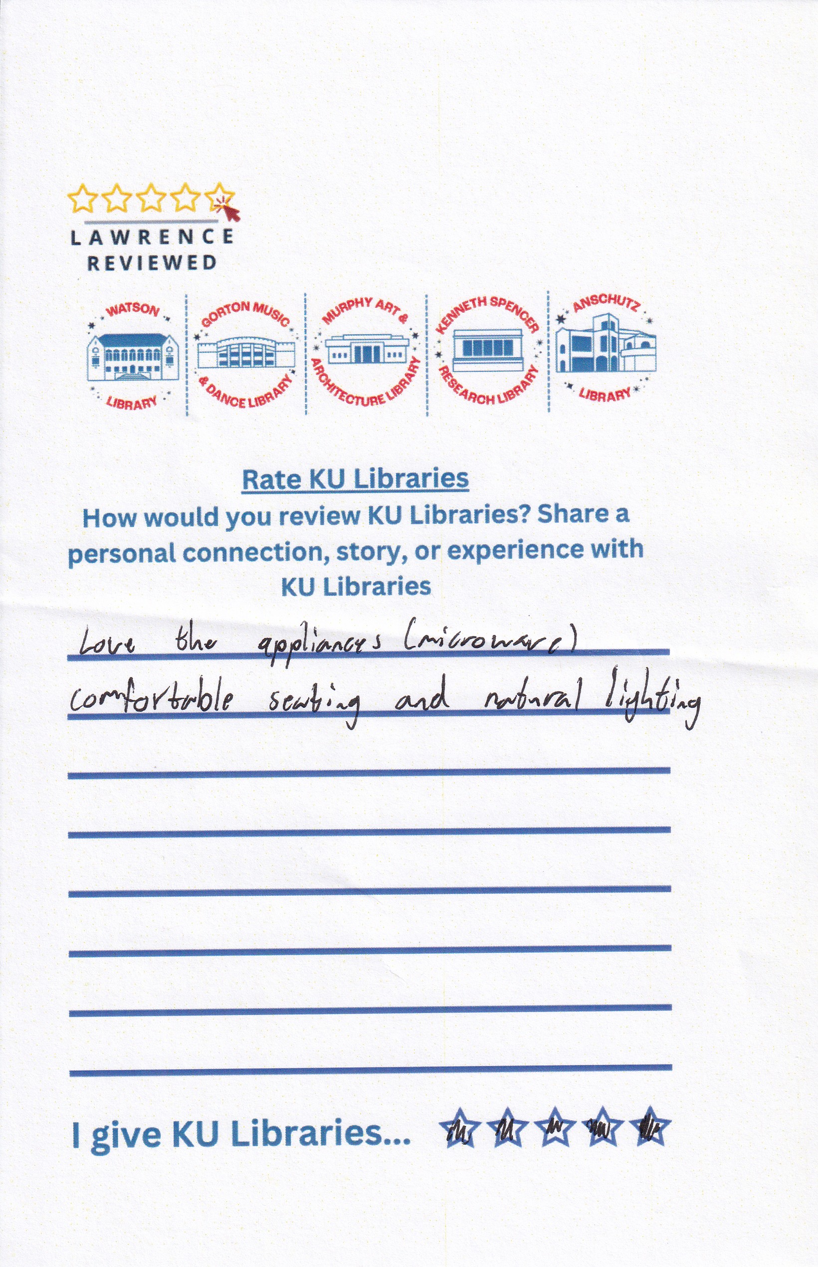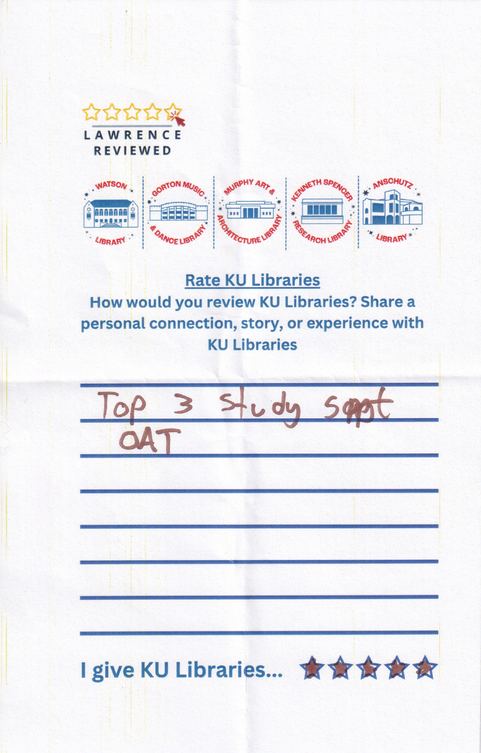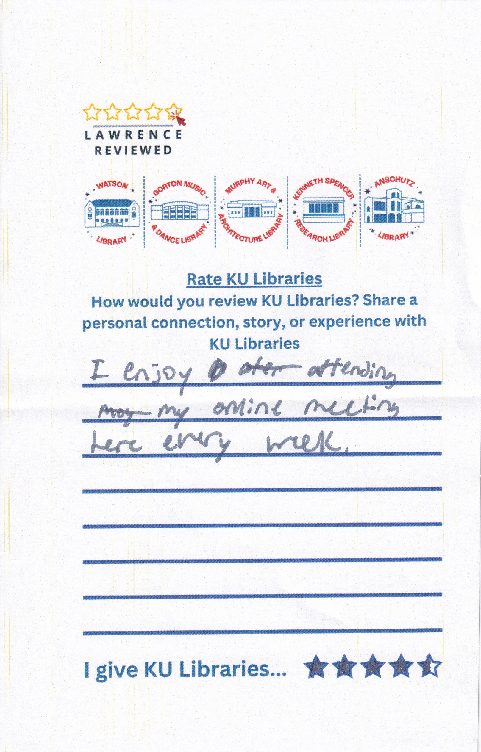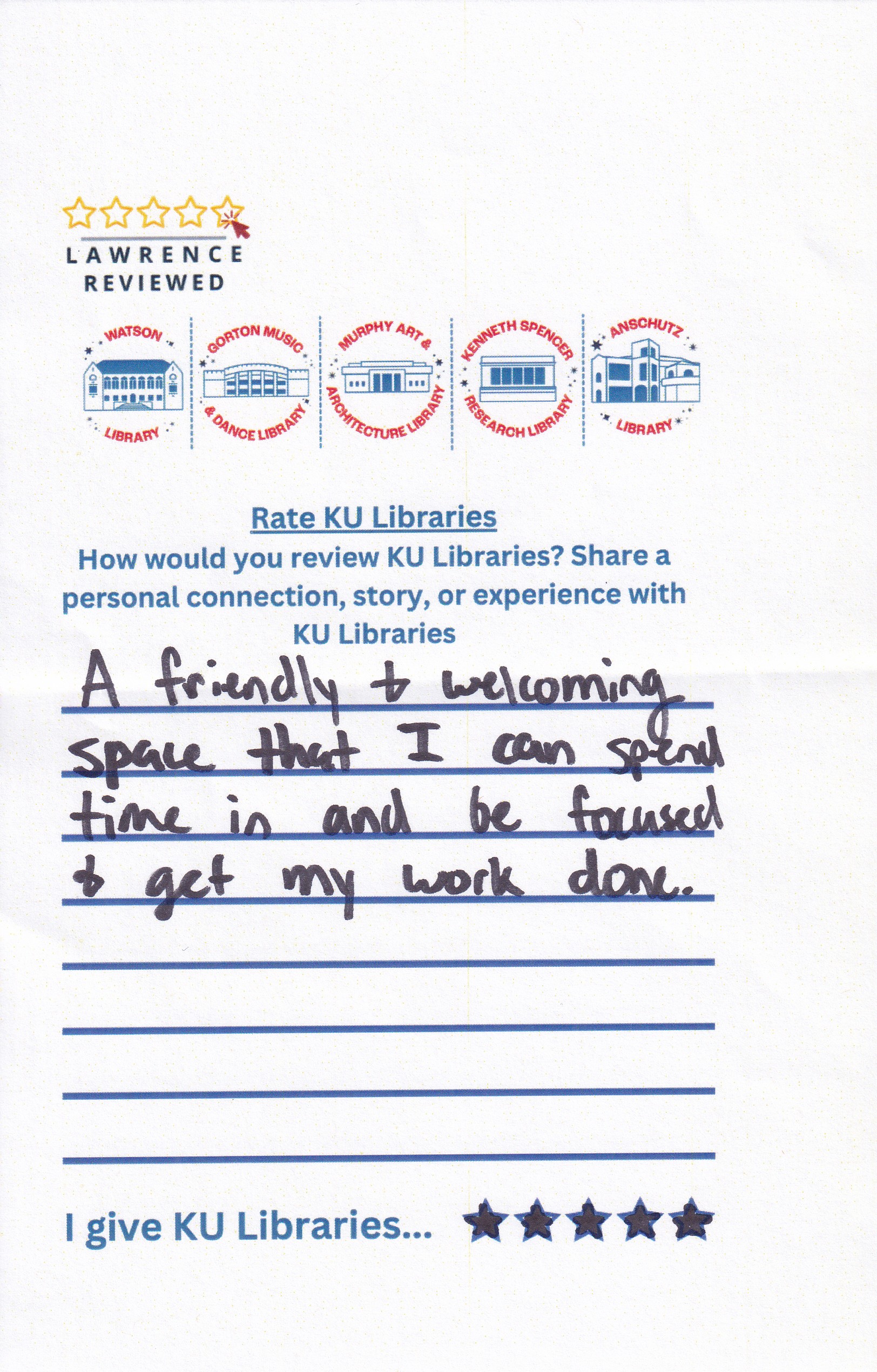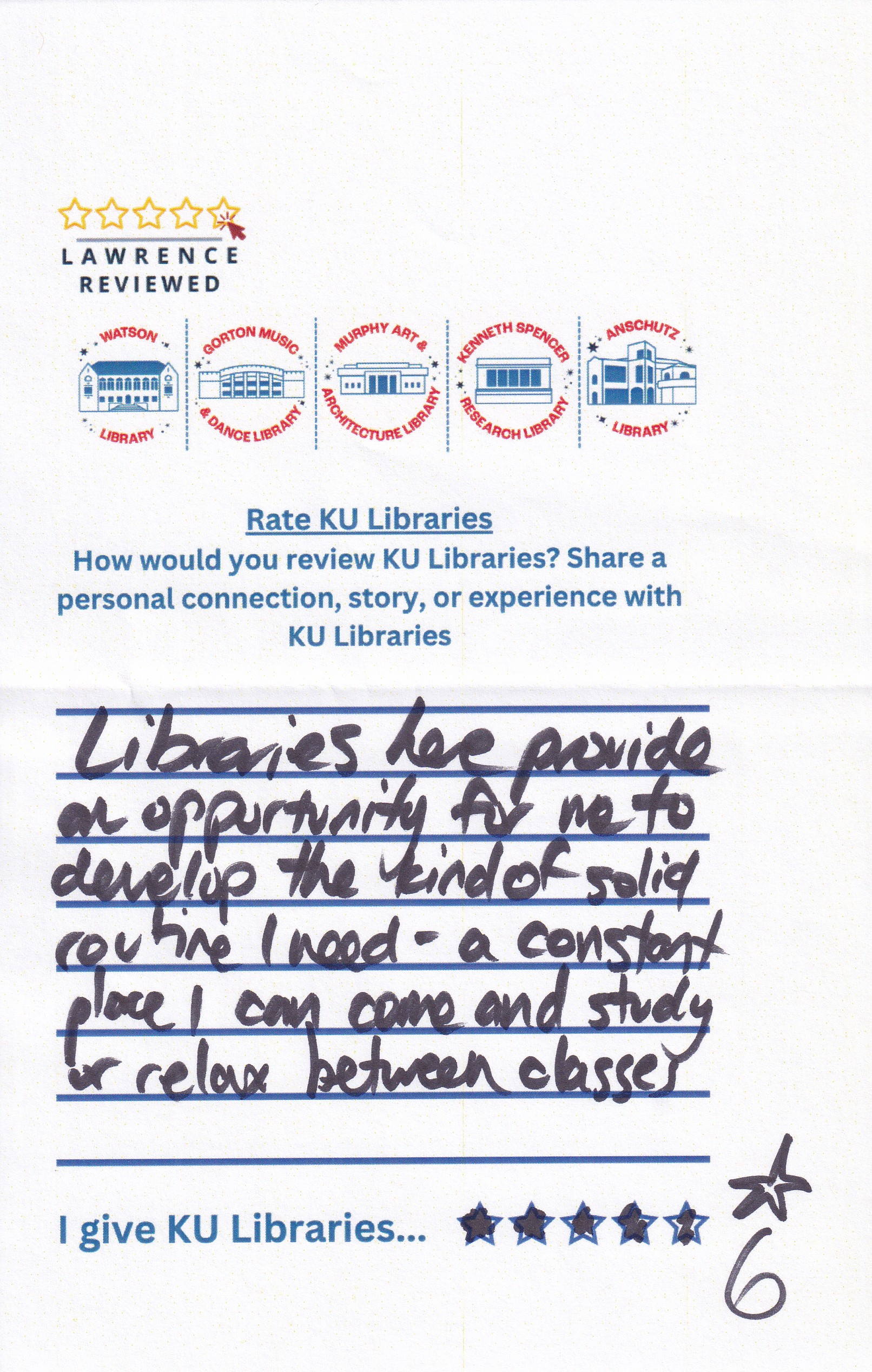 Prompt: How would you review KU Libraries? Share a personal connection, story, or experience with KU Libraries.
